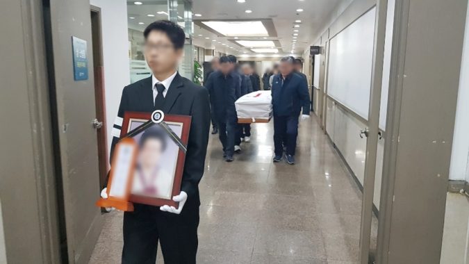발인을 위해 고인을 차량으로 운구하고, 명복을 빌어주고 계시는 모습입니다.