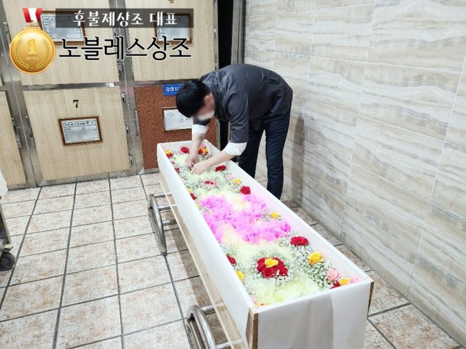 관 내부에 한지와 생화꽃으로 장식을 해드렸습니다.^^