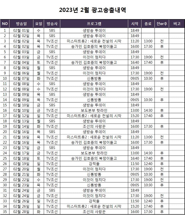 2월에도 송출 될 예정입니다.