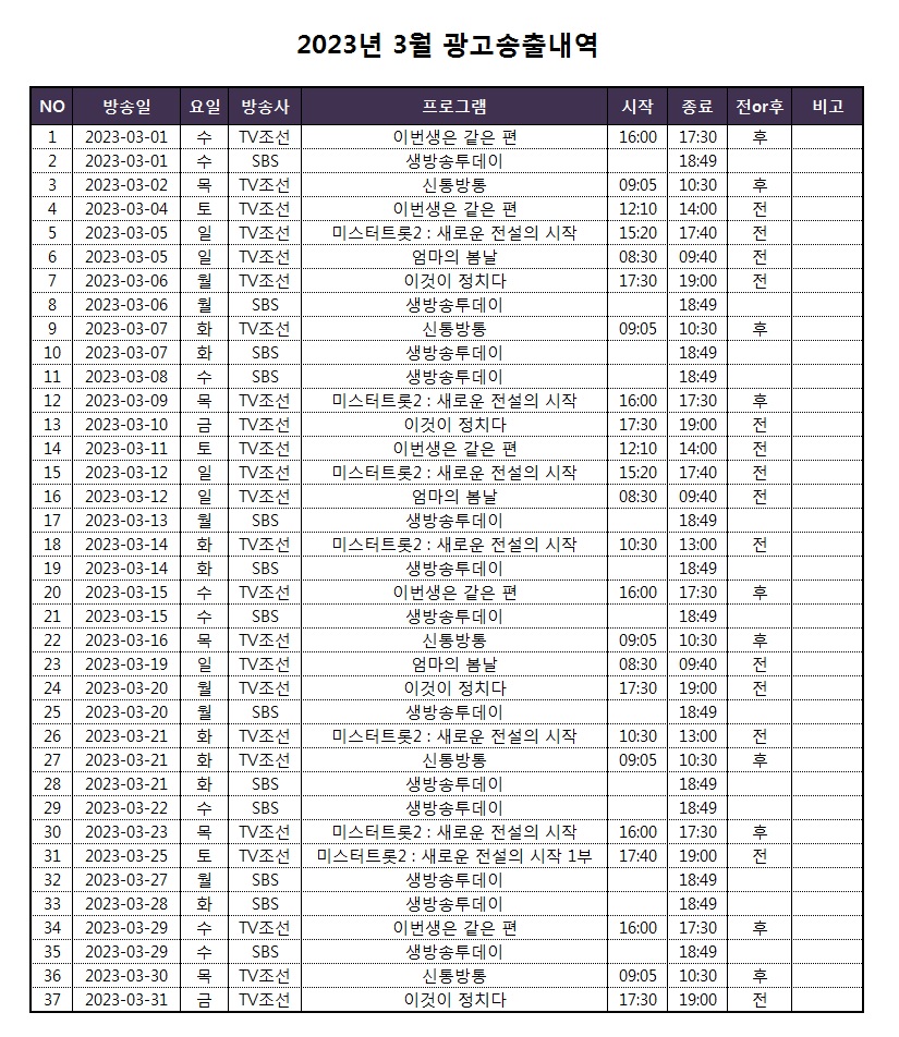 3월에도 송출 될 예정입니다.